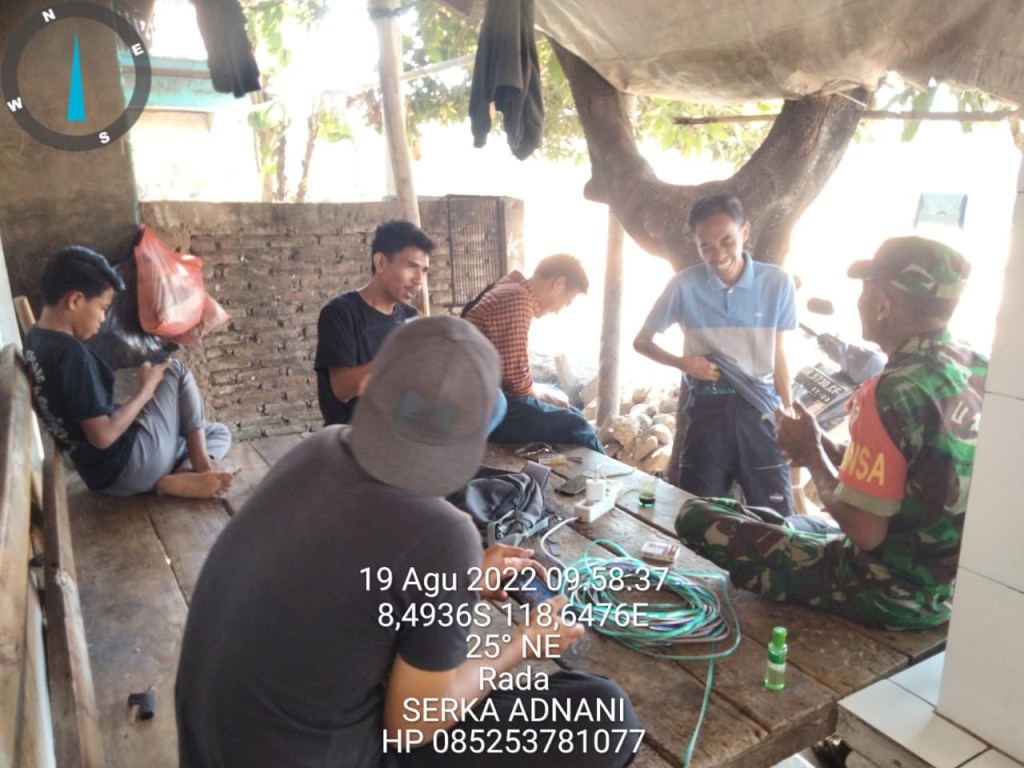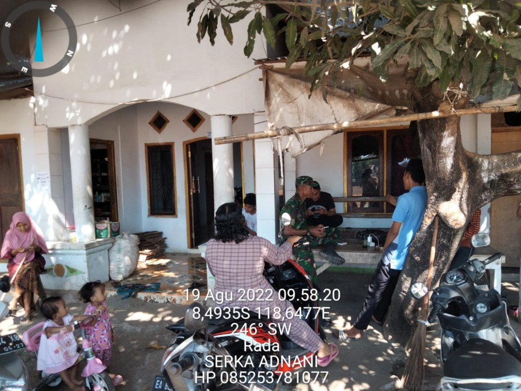 Dalam rangka Memelihara Keamanan dan ketertiban di wilayah Binaan , Babinsa Rada Serka Adnani Anggota Koramil 1608-02/Bolo melaksanakan Komunikasi sosial (Komsos) dengan warga binaan di desa Rada, Kecamatan Bolo Kabupaten Bima, pada Juma’at (19/08/2022)