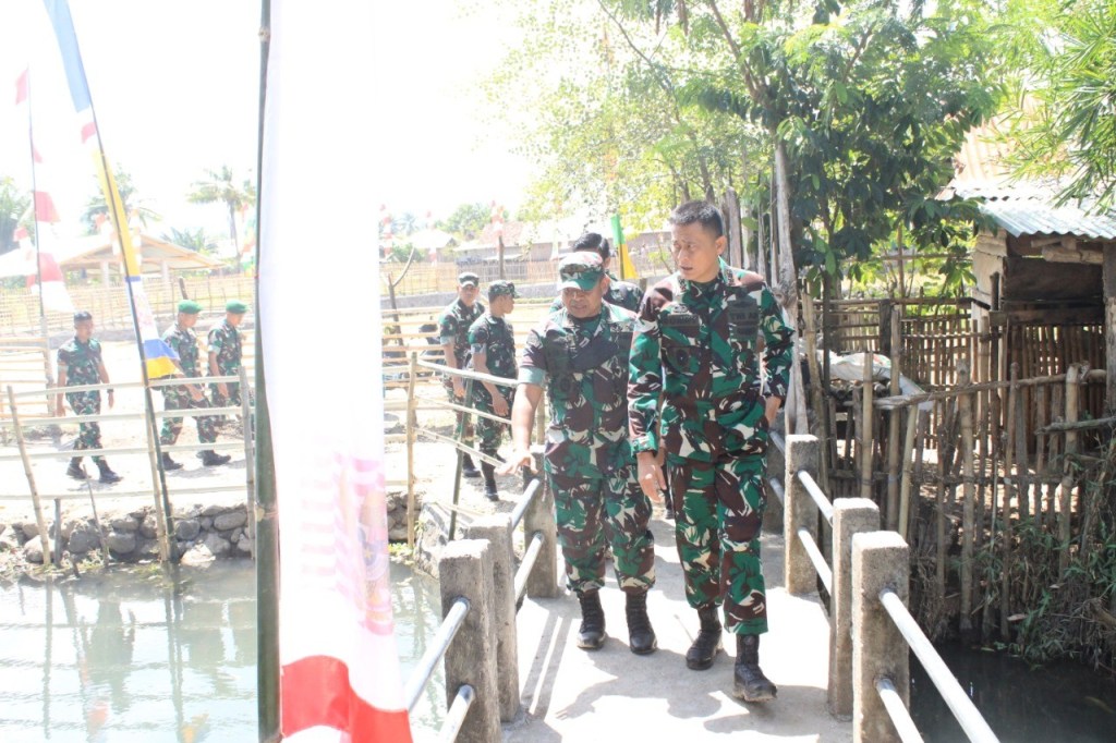 Panglima Kodam IX Udayana, Mayjen TNI Sonny Aprianto, S.E., M.M. melakukan peninjauan langsung terhadap pembangunan pompa hidram di wilayah Desa Monggo dan Desa Ncandi Kecamatan Madapangga Kabupaten Bima Rabu 24/08/22