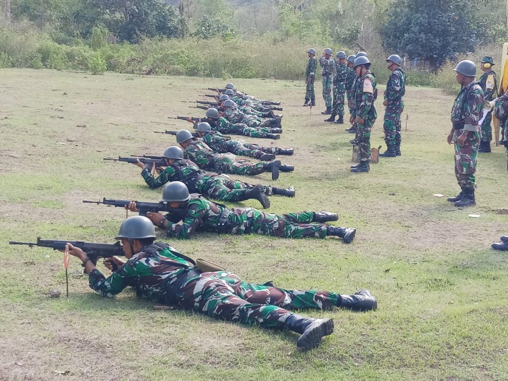 Kodim 1608/Bima Menggelar Latihan Menembak Senjata Ringan (Latbakjatri) Senapan Dalam rangka memelihara dan meningkatkan kemampuan prajurit di bidang menembak, bertempat di Lapangan Tembak Kipan A Yonif 742/Swy Rabu (14/09/2022).