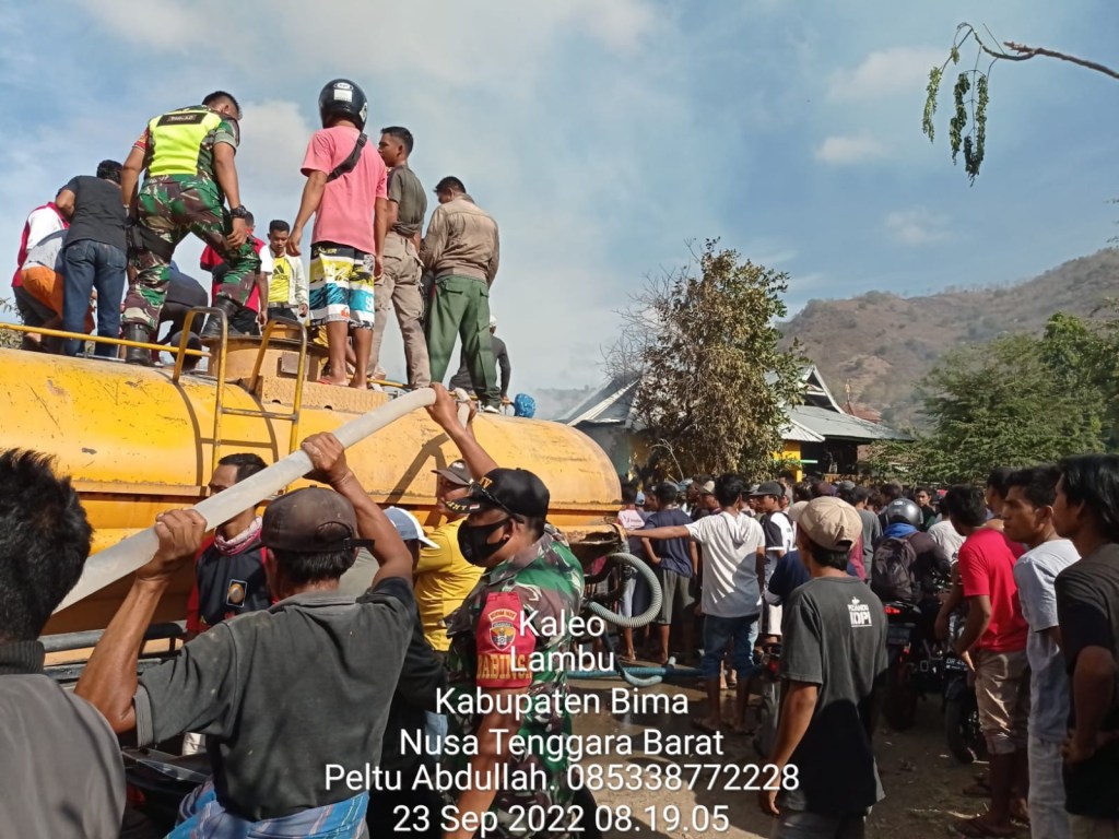Saat persistiwa terjadi Danramil 1608/Sape di dampingi Danpos Ramil Lambu bersama Kapolsek Lambu dan anggota Koramil langsung terjun ke TKP untuk membantu warga yang mengalami musibah kebakaran di Desa Monta Baru.