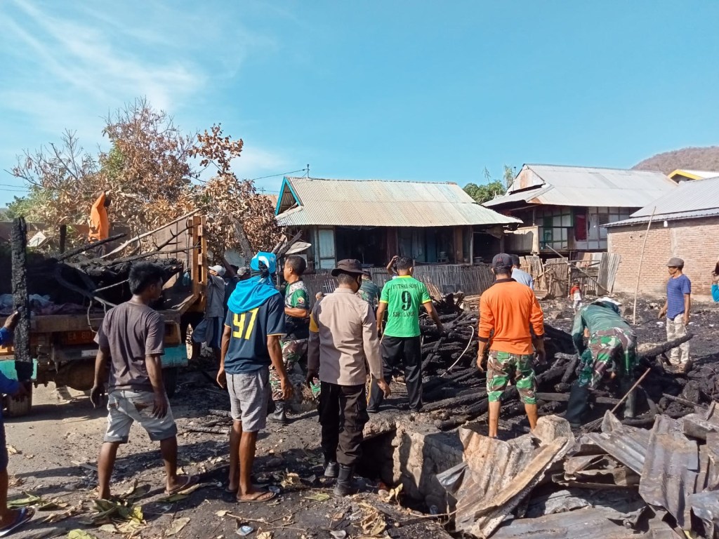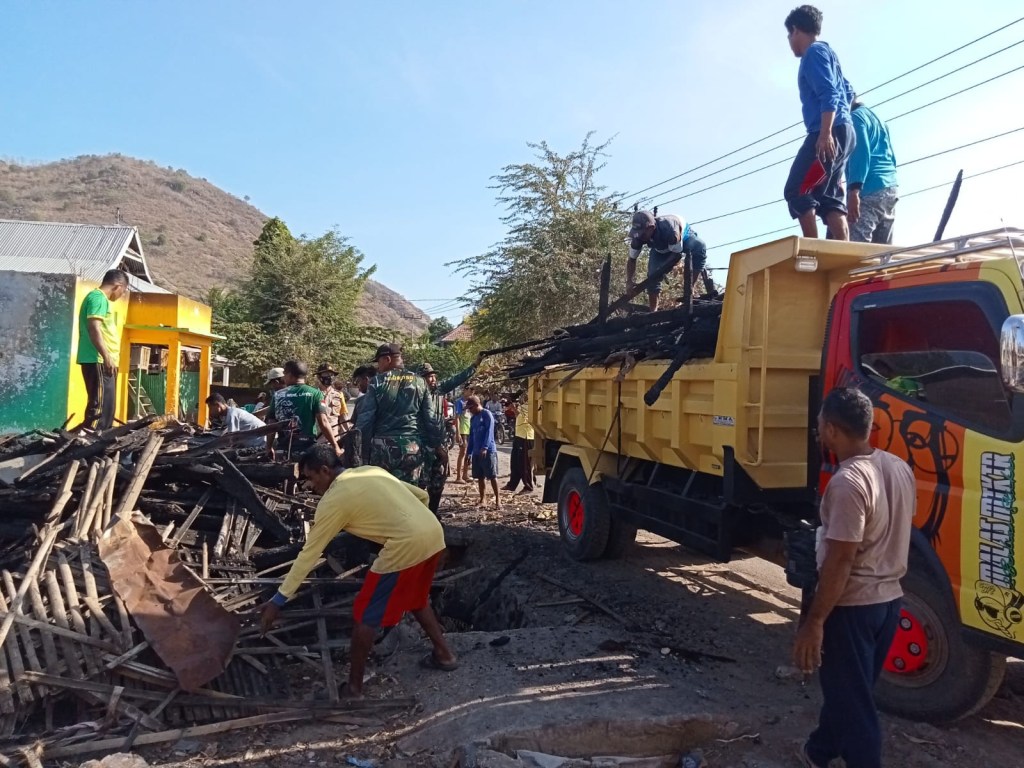 Danramil 1608-03/Sape Lettu Cba Iwan Susanto,S.H melalui Danpos Ramil Lambu Peltu Abdullah mengatakan , dengan semangat gotong royong yang kita lakukan bersama sama ini dalam membersihkan sisa-sisa puing semoga bermanfaat dan dapat meringankan beban korban.