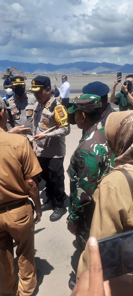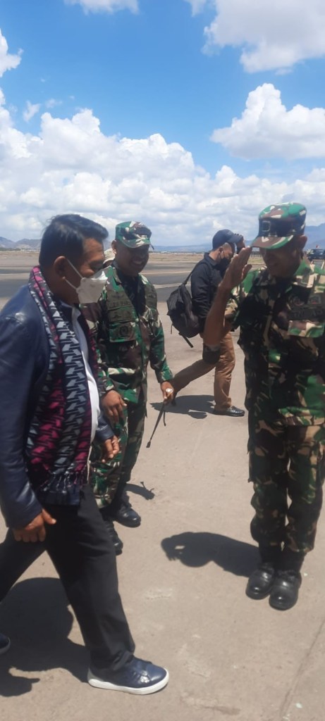 Komandan Kodim 1608/Bima Letkol Inf Muhammad Zia Ulhaq,S.Sos Bersama Forkopinda Kabupaten Bima Menyambut Kedatangan rombongan Kepala Staf Kepresidenan (KSP) Jenderal TNI (Purn) Dr. H. Moeldoko, S.I.P. di Bandara Sultan Muhammad Salahuddin Bima Senin 03 Oktober 2022.