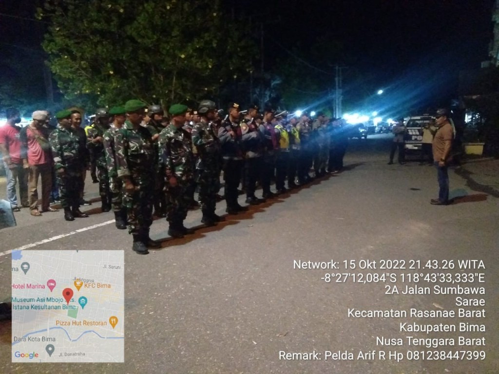 Apel Patroli Gabungan ini di pimpin oleh Kabag Ops Polres Bima Kota Kompol Nusra Nugraha,S.H dengan jumlah personil 64 orang yang terdiri dari 5 orang personil dari Koramil 1608-01/Rasanae , 1 Orang dari Subden Pom Bima , 3 Orang dari Kompi Senapan A Yonif 742/Swy , 5 Orang dari Kompi Pelopor Brimob,35 orang dari Polres Bima Kota,2 orang dari anggota Sat Pol PP Kota Bima,13 Orang dari Kantibmas/Pok Dar .
