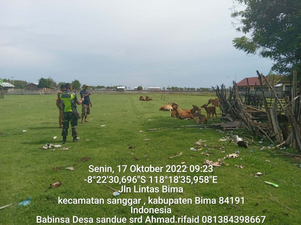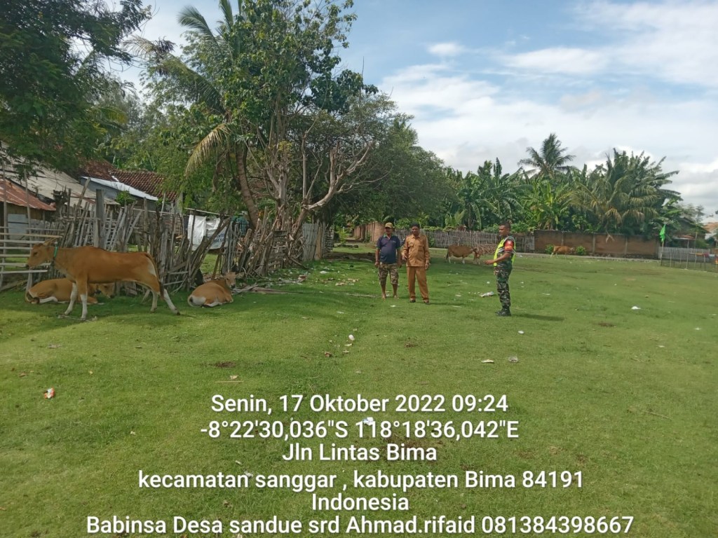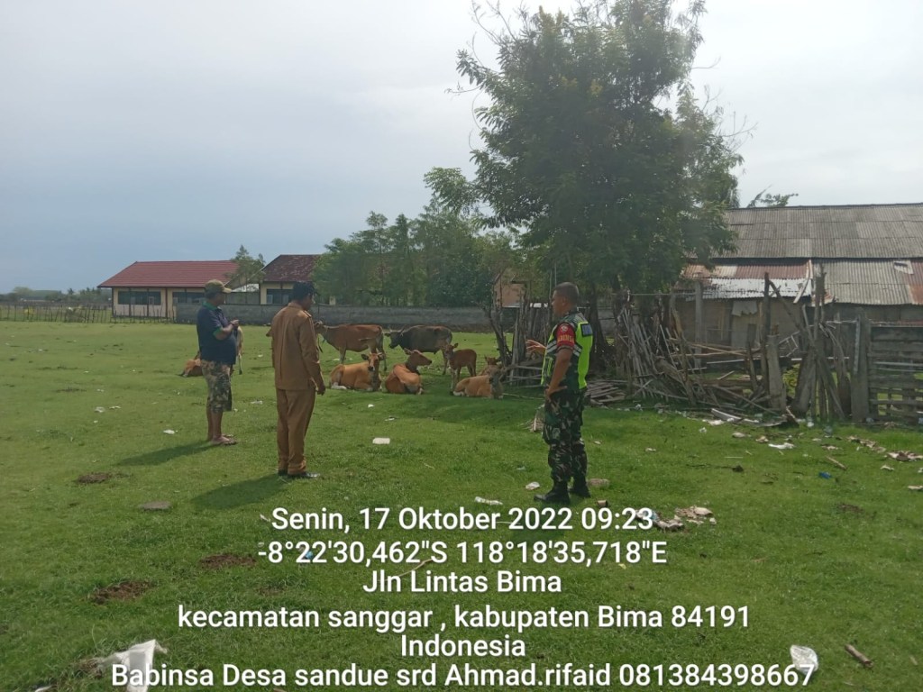 BIMA – ADONARA NEWS (17/10/22) Babinsa Desa sandue Serda Ahmad Rifaid Pos Ramil Sanggar Koramil 1608-05/Donggo melaksanakan Sosialisasi PMK (Penyakit Mulut dan Kuku) kepada masyarakat yang memiliki Hewan Ternak.