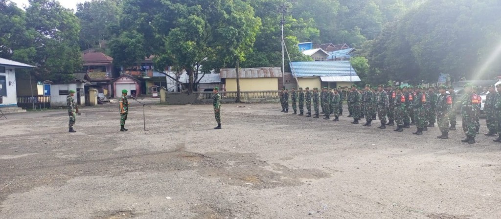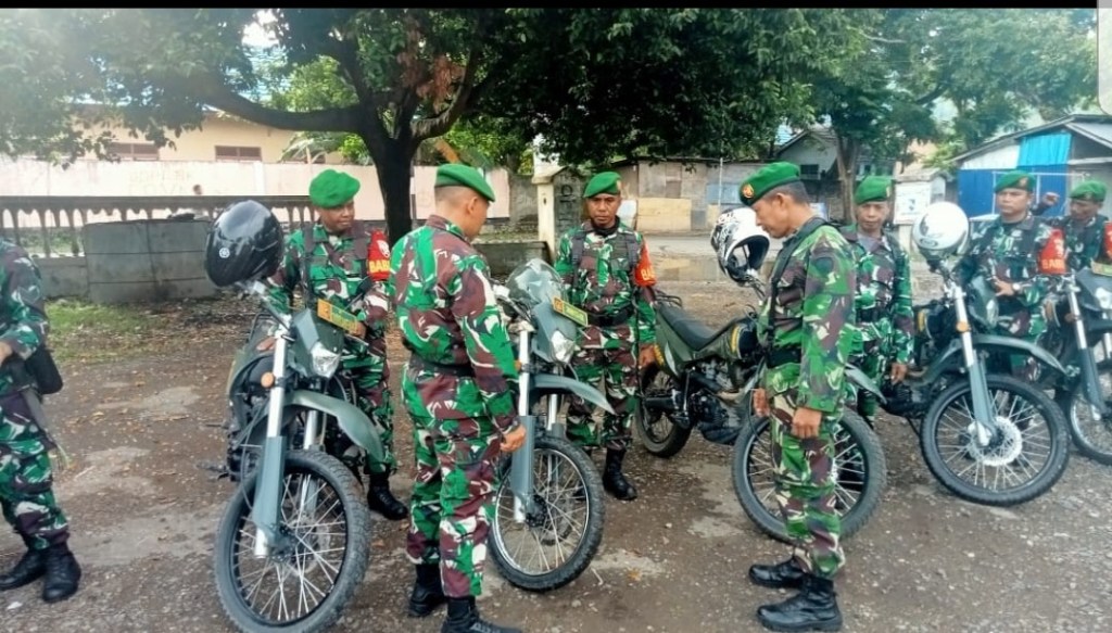 Komandan Kodim 1608/Bima Letkol Inf Muhammad Zia Ulhaq,S.Sos selaku pimpinan apel yang didampingi Perwira Staf mengecek langsung kesiapan Personil maupun Materiil dalam mengantisipasi Penanggulangan Bencana di wilayah.
